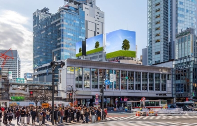 渋谷のスクランブル交差点から見える3基大型ビジョン(2026年5月から)