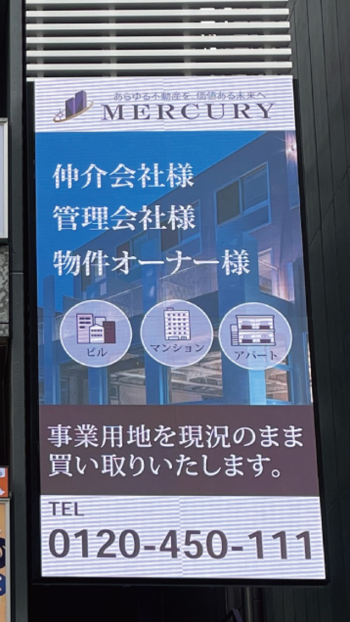 錦糸町駅南エリアの繁華街に設置された大型デジタルサイネージ。動画と音声を組み合わせた広告放映が可能で、オフィス街・商業施設・飲食街が集まるエリアで、ブランド認知やキャンペーン告知に高い効果を発揮します。昼夜を問わず多様な人が行き交うロケーションです。