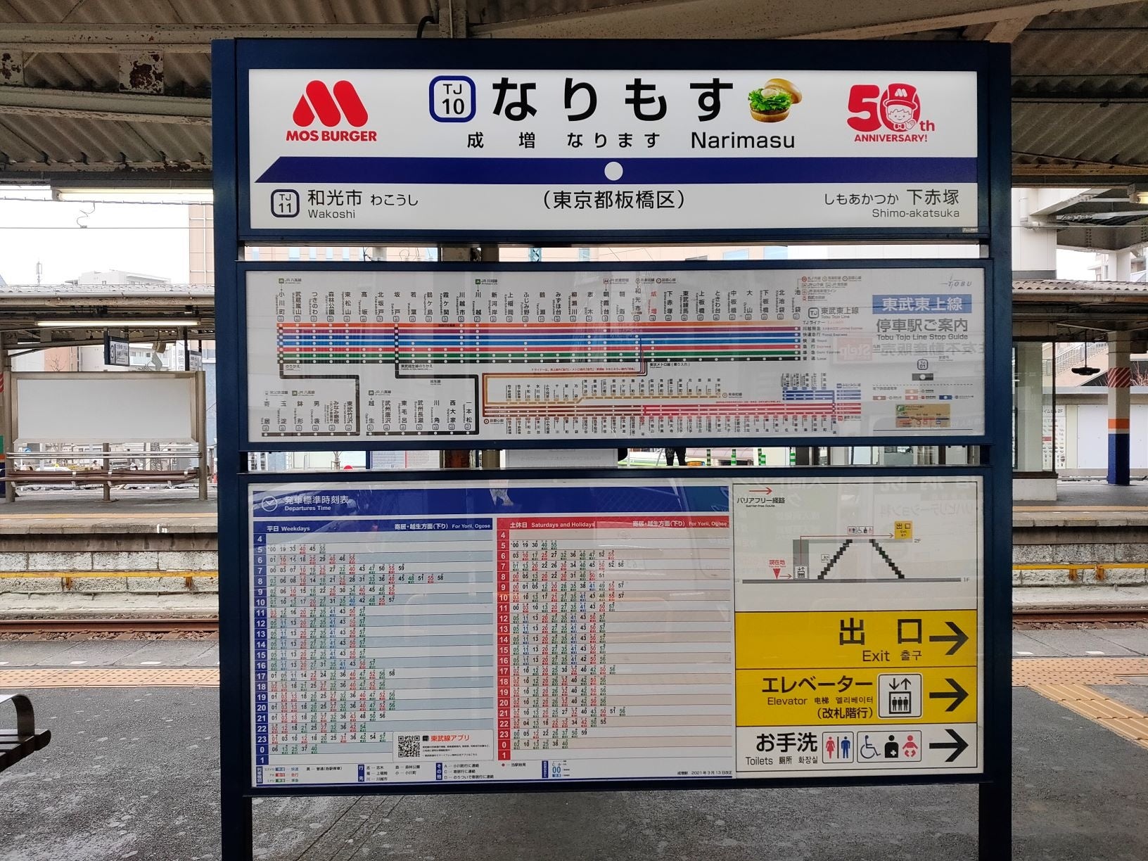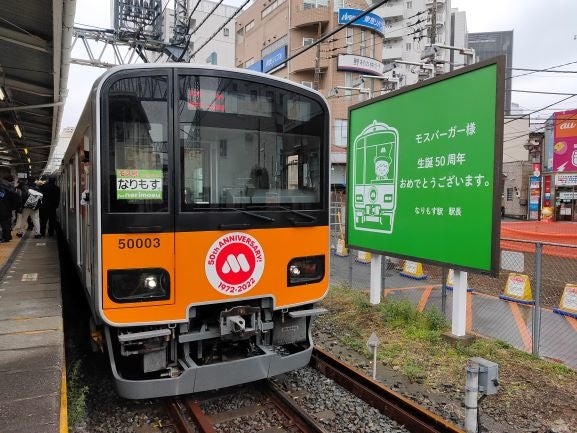 期間限定で東上線 成増駅が「なりもす駅」に!地元企業の「モスバーガー」創業50周年をお祝い