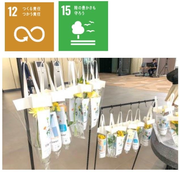 ユニークフラワー(廃棄予定のお花)の配布を定期的に行い、ワーカー向けに“life with flower”と題して、2021年は春、秋、冬と3回実施、各回約200本を配布し、年間で約600本の廃棄予定だったお花を配りました。