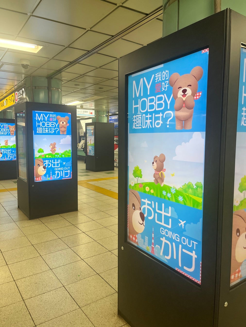 今回新たに展開する広告では、多種多様な人たちが行き交う六本木で、多くの人にクマを知ってもらいたいという思いから、多様な言語(日本語、英語、中国語)を使いクマのプロフィールとともに可愛らしさや親しみやすさを表現しています。