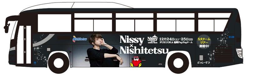 11月24日(木)~12月25日(日)までの期間、外装ラッピングや車内装飾、ご本人による車内音声アナウンスなどNissy一色に染まった高速バス「Nissy号」を、北九州~福岡間で運行いたします。また、福岡市内の一部の路線バスにおいても車内音声アナウンスを放送いたします。