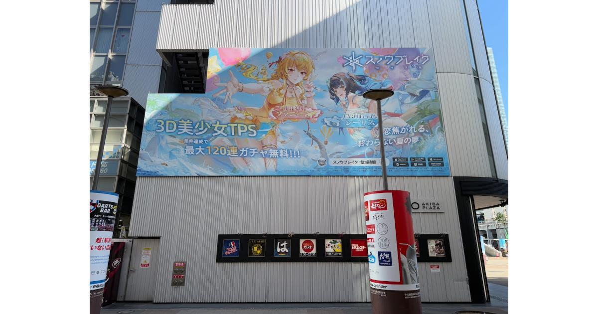 『スノウブレイク:禁域降臨』期間限定イベント『常夏の休日』の告知を秋葉原の屋外広告で実施!