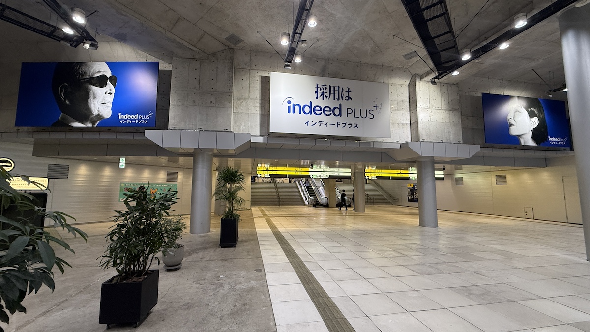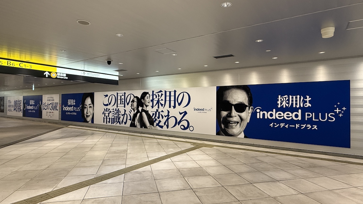 Indeed Japanの求人配信プラットフォーム「Indeed PLUS(インディードプラス)」は、タモリさん、宮沢りえさんを起用し交通広告や屋外広告を実施しています。
