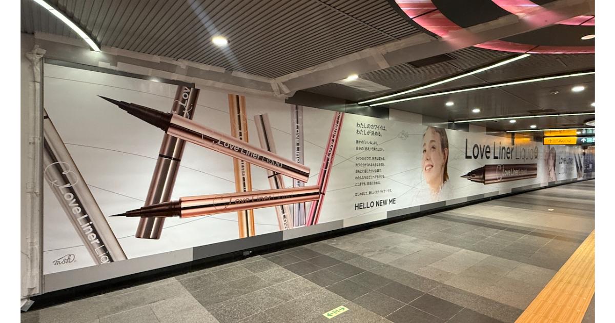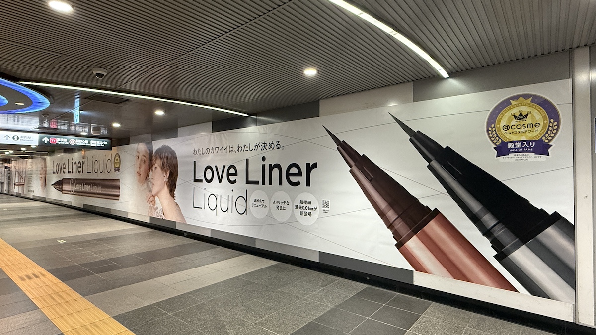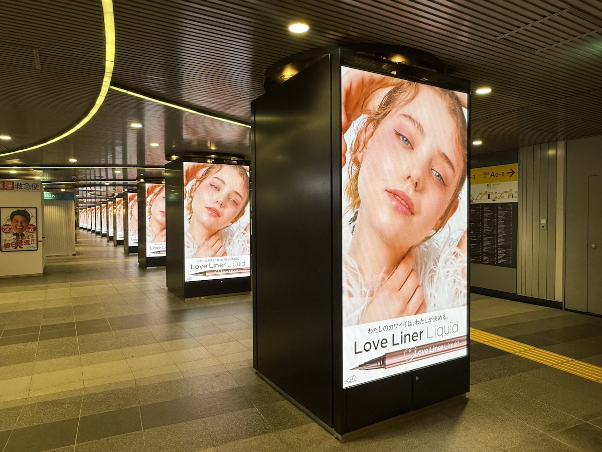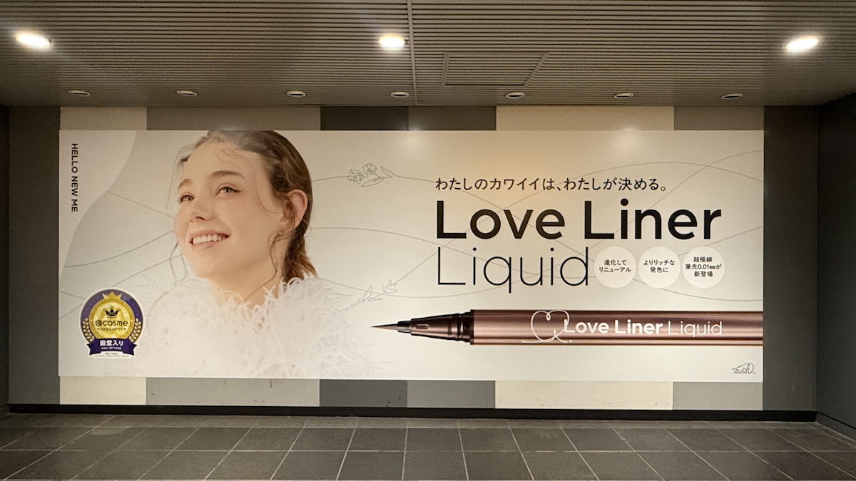 リニューアルに合わせて渋谷駅の地下通路をジャックし、「わたしのカワイイはわたしが決める。」というキャッチコピーとリキッドアイライナーのビジュアルが展開されていました。
