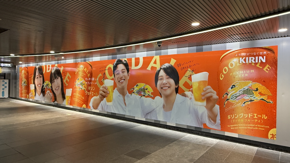 キリン、グッドエール、Mrs. GREEN APPLEの大森元貴さんや綾瀬はるかさんを起用し渋谷駅で交通広告を実施