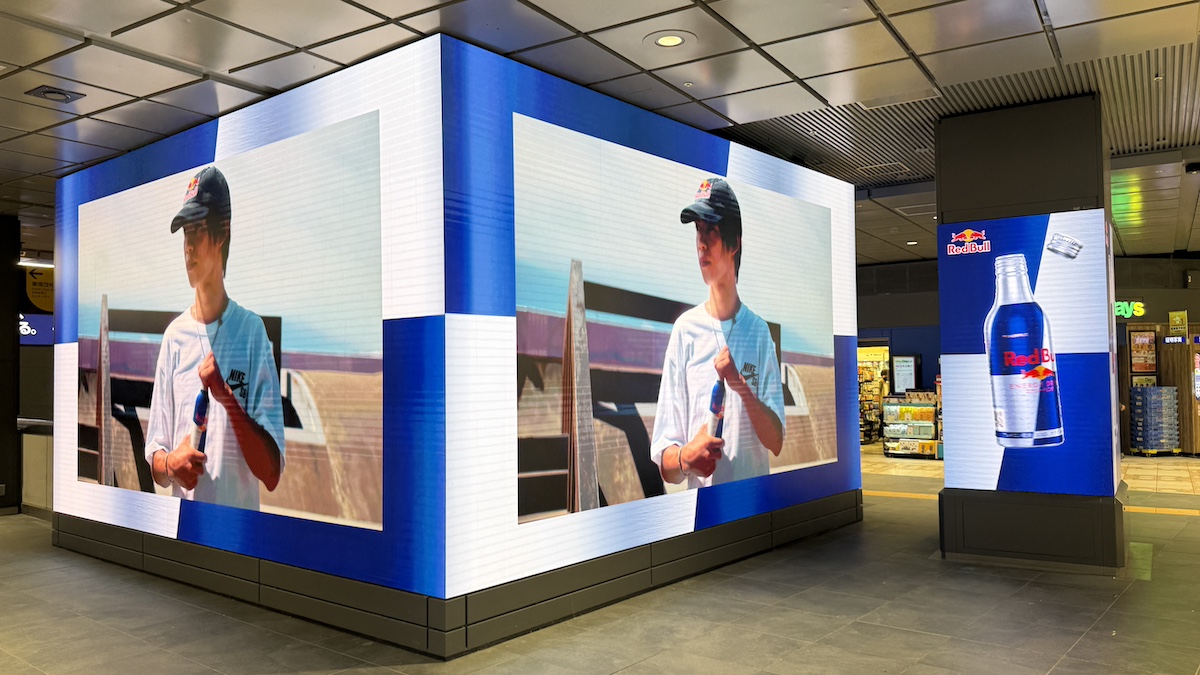 レッドブル、スケートボード選手の堀米雄斗さんを起用し新宿駅をサイネージジャック!