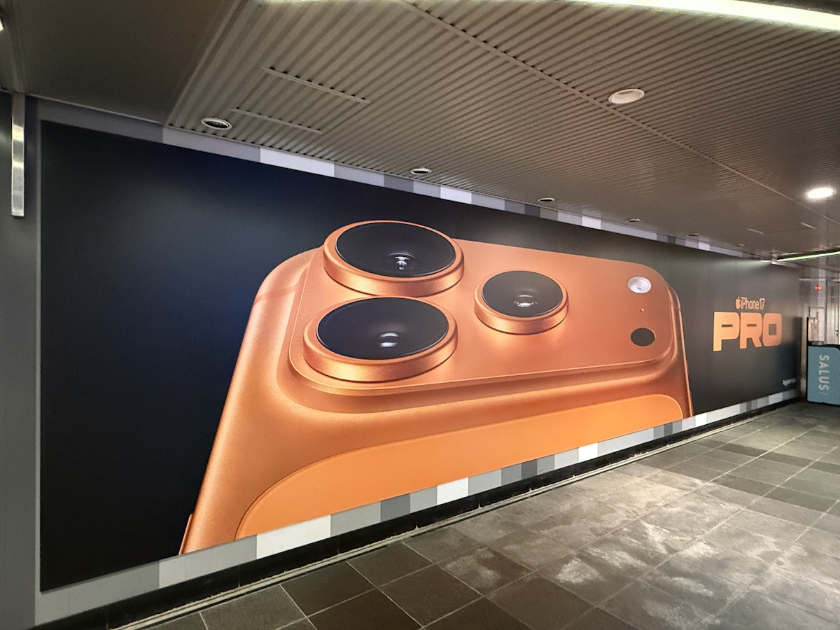 楽天モバイルは「iPhone 17pro」のプロモーションを交通広告で展開しています。
