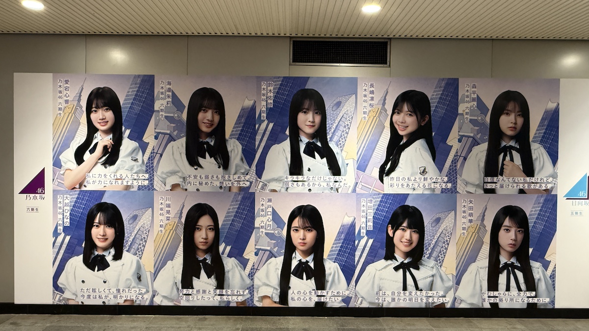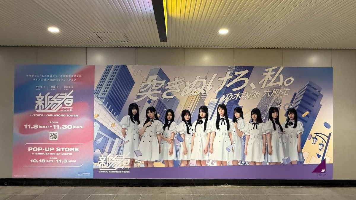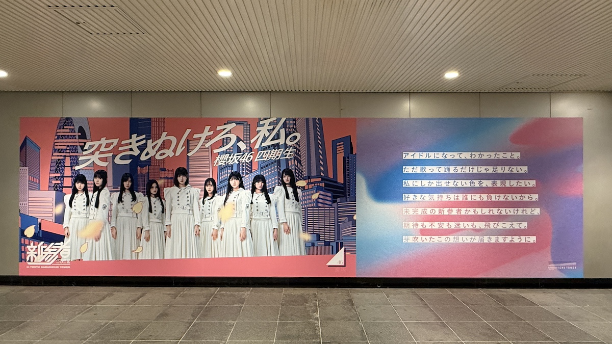 渋谷駅の地下通路では、「突き抜けろ、私」のキャッチコピーと乃木坂46六期生、櫻坂46四期生、日向坂46五期生のキービジュアルと各メンバーの写真、POP UPの告知が展開されていました。