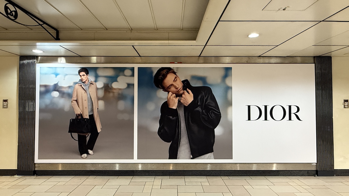 「ディオール アイコンズ」カプセル コレクションは、アンバサダーのロバート・パティンソンを起用し、交通広告を実施しています。