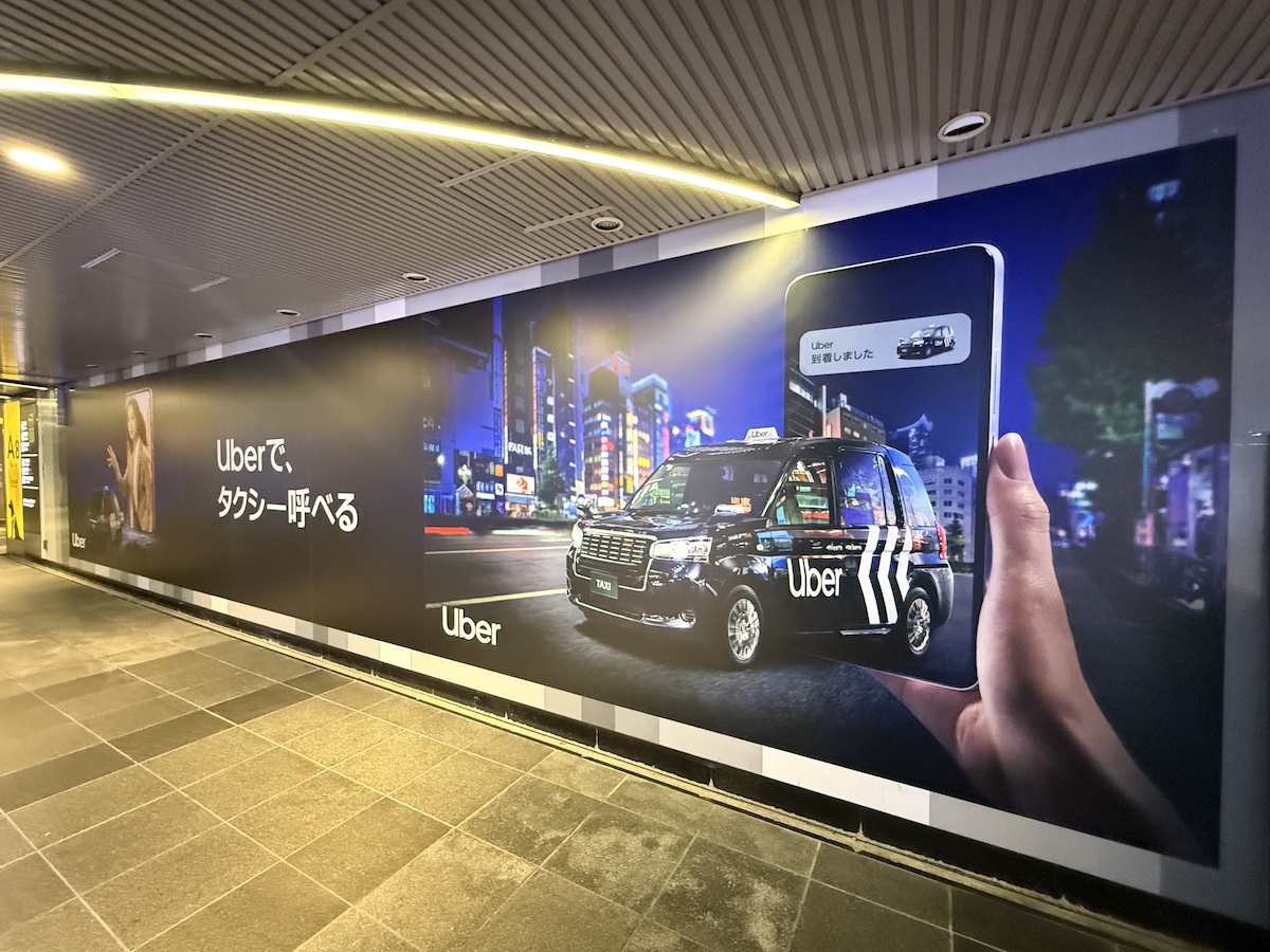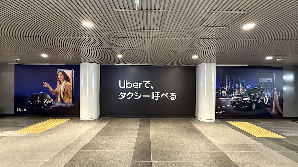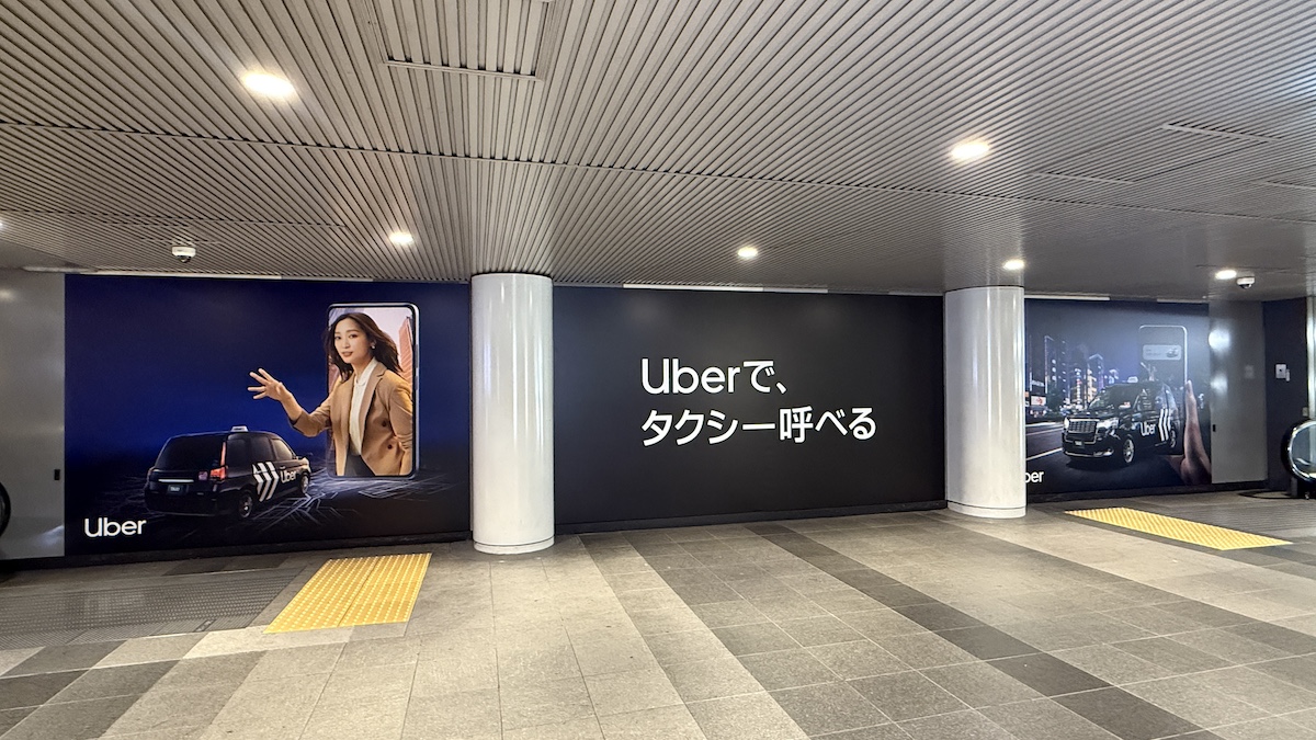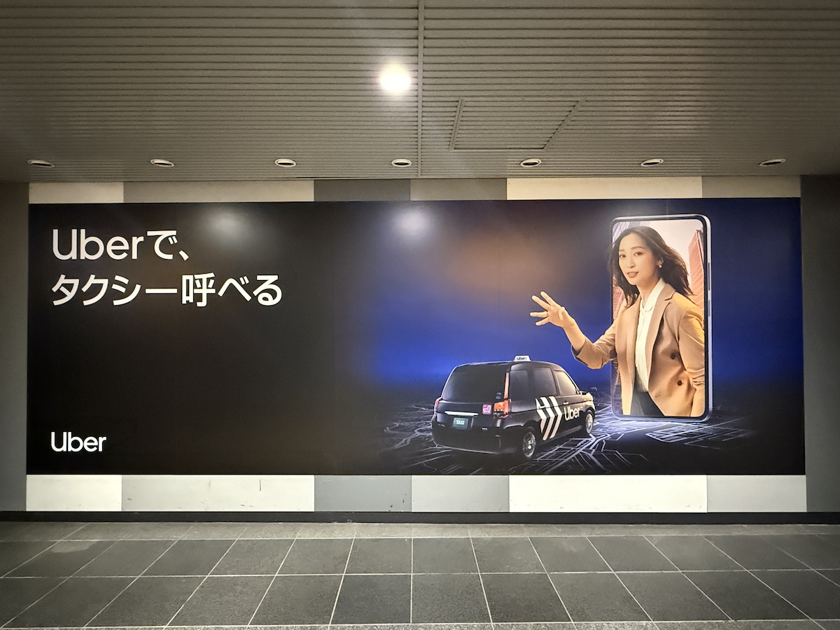 Uberは、杏さんを起用し渋谷駅で交通広告を展開しています。