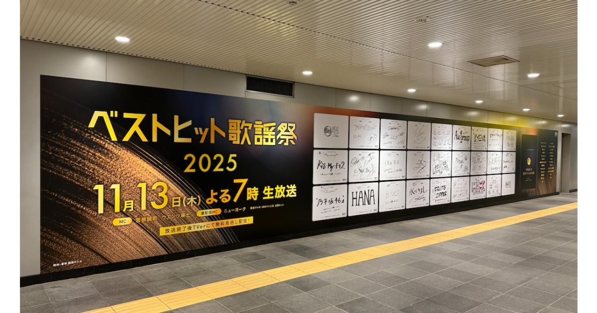 ベストヒット歌謡祭、出演アーティストのサインが渋谷駅の交通広告に登場!