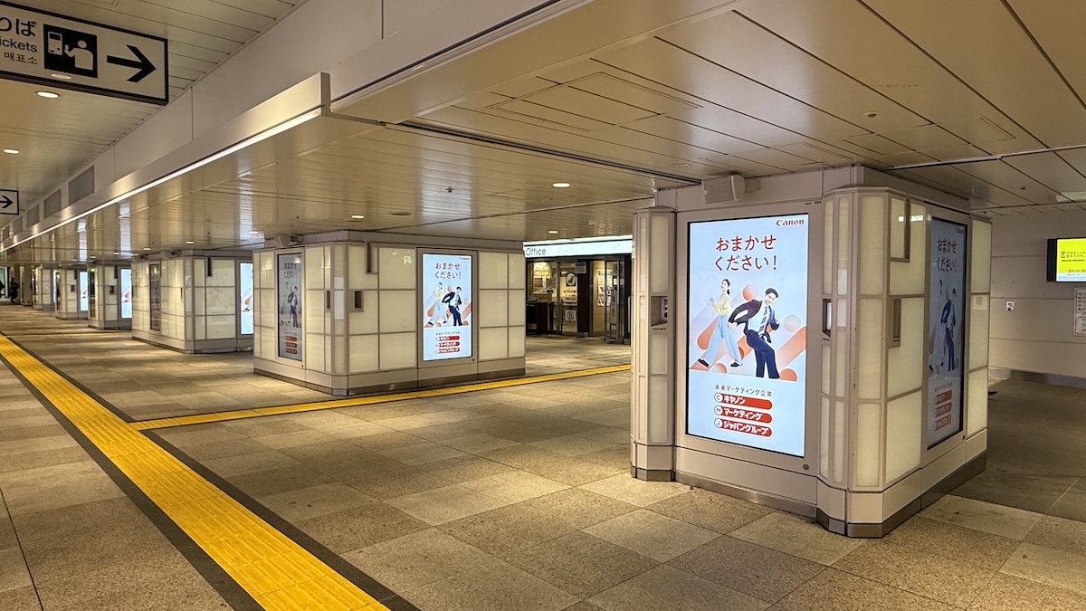 キヤノンマーケティングジャパン、ブランディング広告で新宿駅の地下通路をサイネージジャック