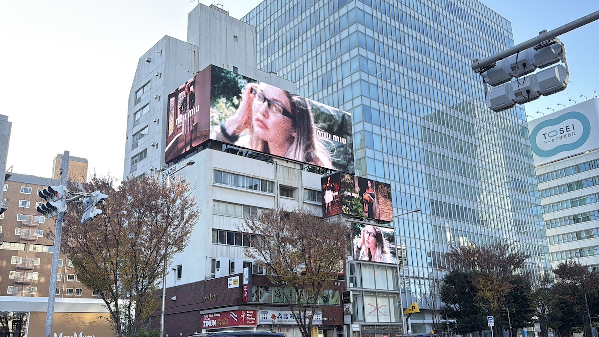 表参道の交差点にあるデジタルサイネージでは、新キャンペーンビジュアルが放映されていました。