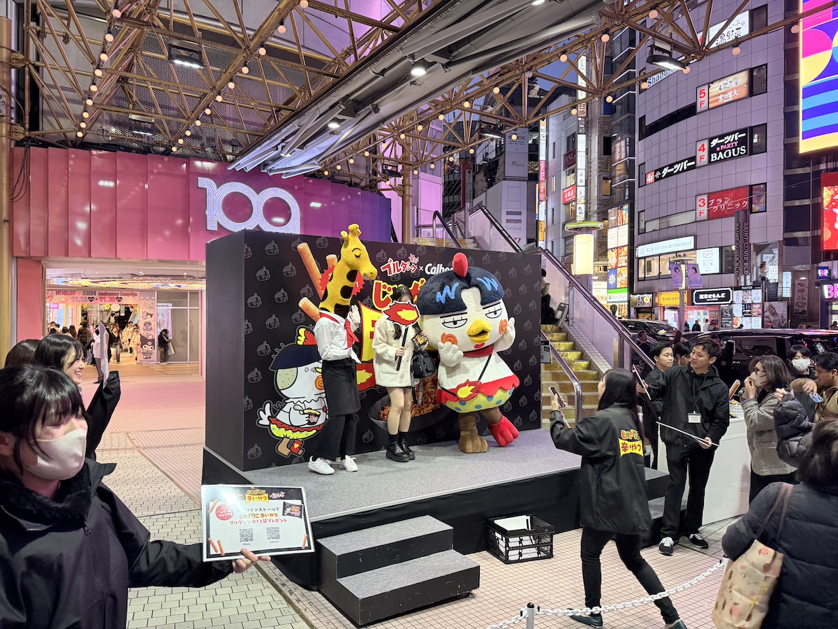 また、「じゃがりこ」のキリンのキャラクター「じゃがお」や「ブルダック炒め麺」シリーズに登場するキャラクターの「ホチ」の着ぐるみも登場し、参加者の方々が一緒に写真撮影を行ったりオリジナルデザインのフォトスポットでレシート写真機を使った撮影を楽しんでいました。