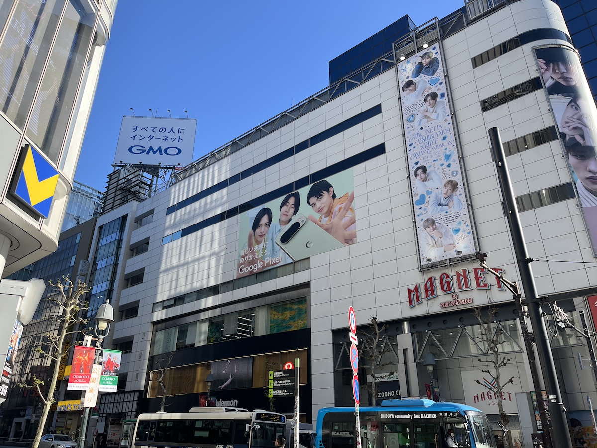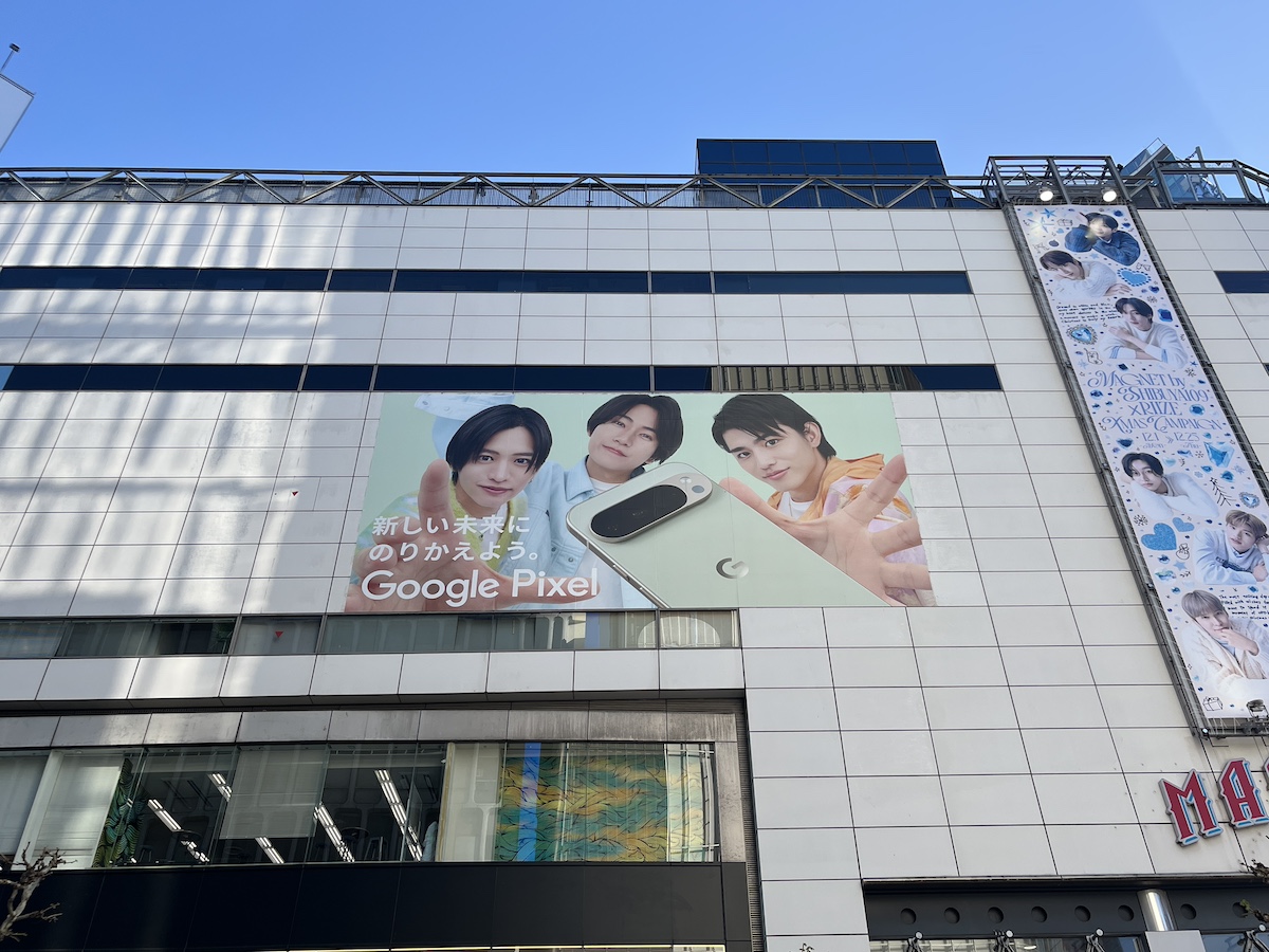 Google Pixelは、timeleszの橋本将生さん、猪俣周杜さん、篠塚大輝さんを起用し、渋谷で屋外広告を実施しています。