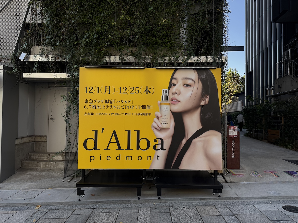 dalba Global Co., Ltd.が展開するプレミアム・ヴィーガン・ビューティーブランド、「ダルバ(d’Alba)」が2025年12月1日から12月25日まで東急プラザ原宿「ハラカド」6・7階屋上テラスにてポップアップを開催しています。