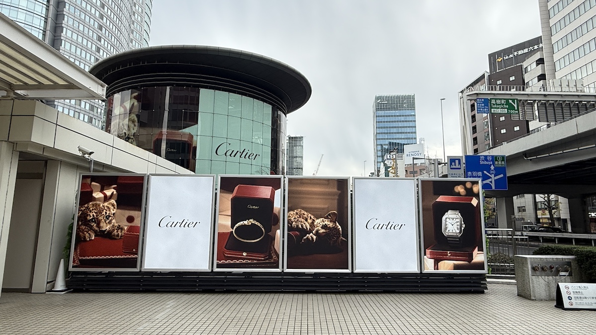 カルティエは、ホリデーシーズンに合わせて六本木や表参道の屋外で広告を実施しています。