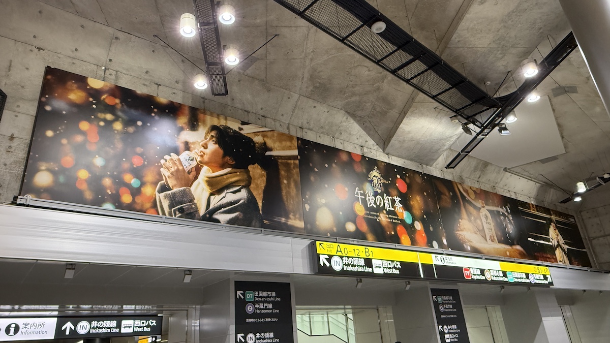 渋谷駅では、「冬は、あったかいミルクティー」というキャッチコピーと、目黒蓮さんがミルクティーを飲んでいる姿がビジュアルとなっていました。