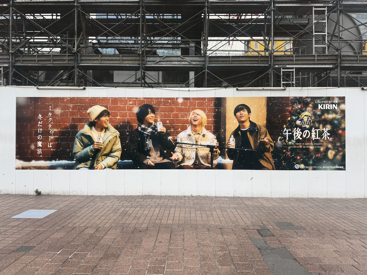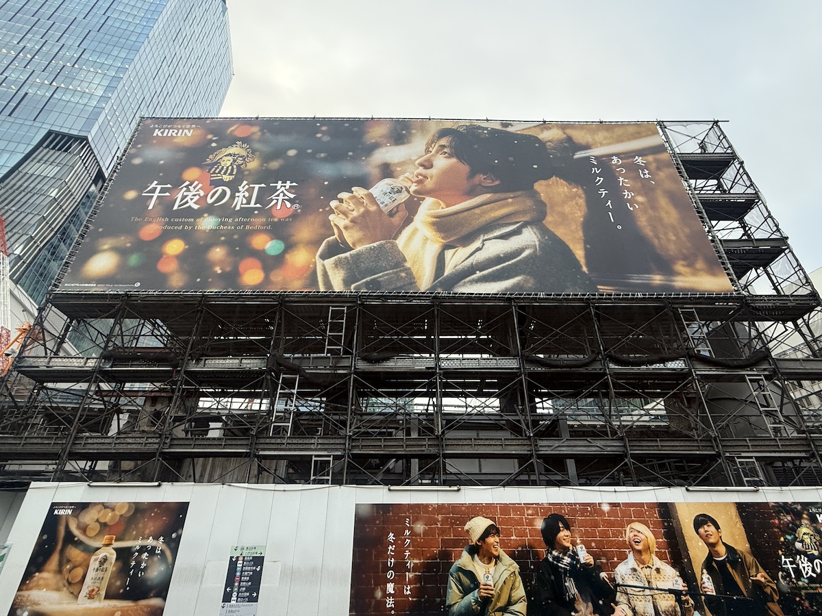 キリン「午後の紅茶」、目黒蓮さんとMrs. GREEN APPLE を起用し、渋谷駅交通広告を実施
