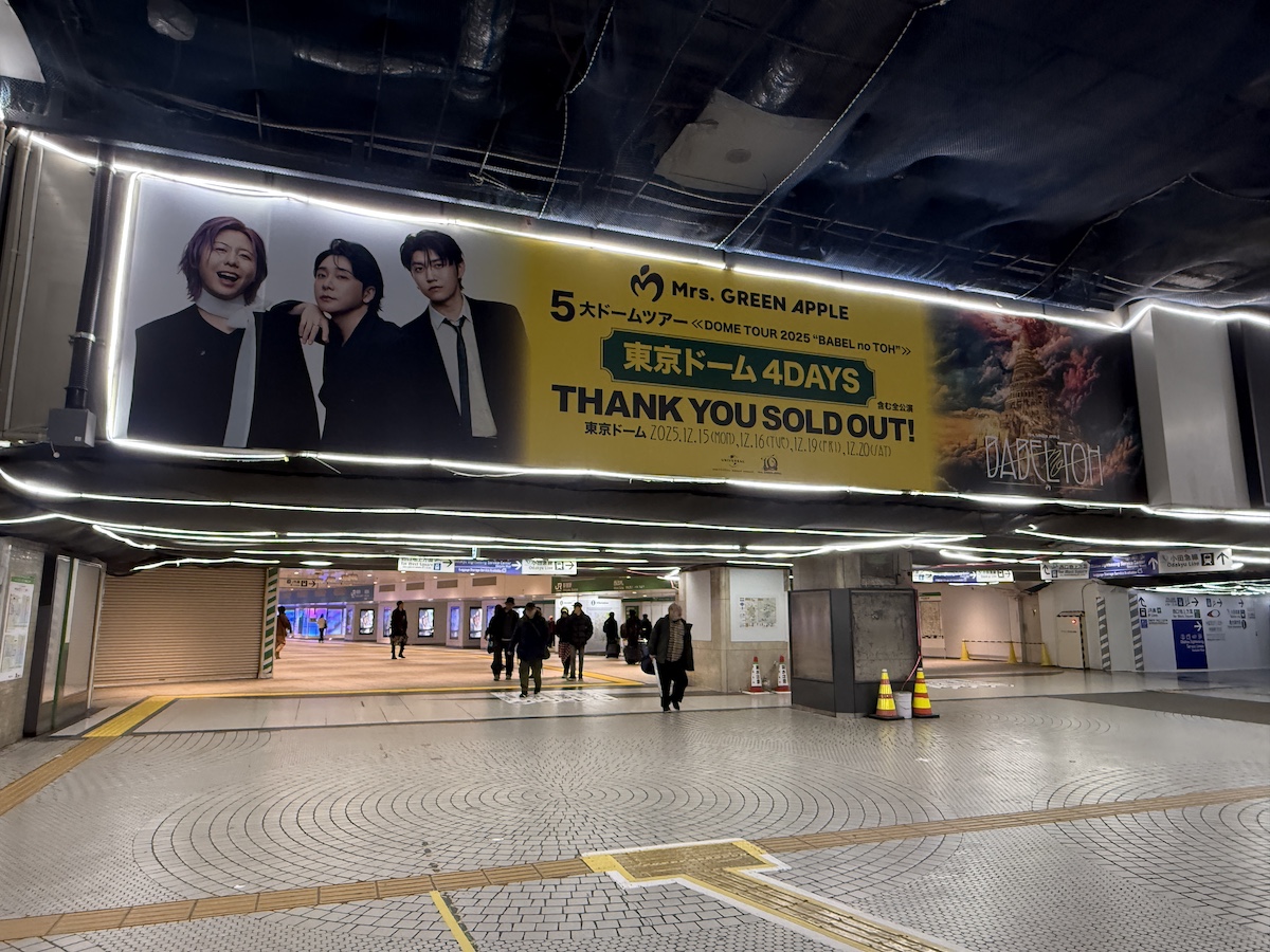 Mrs.GREEN APPLE、5大ドームツアー、東京ドーム4daysの告知を新宿駅の交通広告で実施!