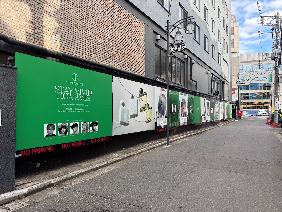 『SINN PURETÉ(シンピュルテ)』は、国内トップ美容師5名とコラボレーションし、“色・質感・香り”を軸とした新たなビジュアルコレクションを原宿の屋外広告で展開しています。