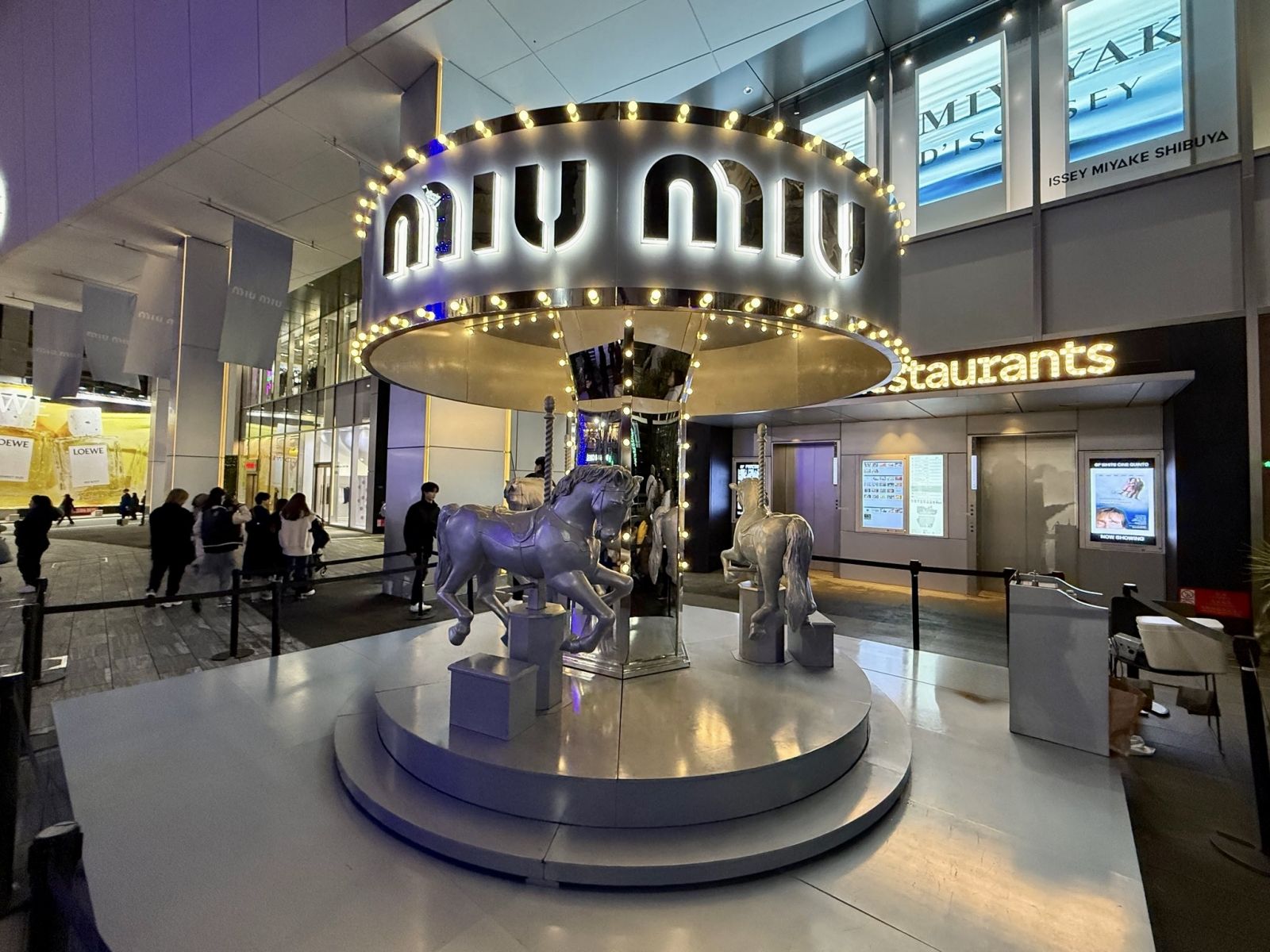 miumiuは、ホリデーシーズンにあわせて渋谷PARCOの前にメリーゴーランドを設置しています。