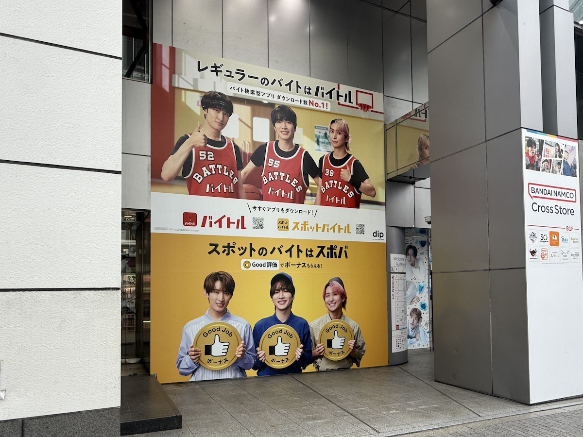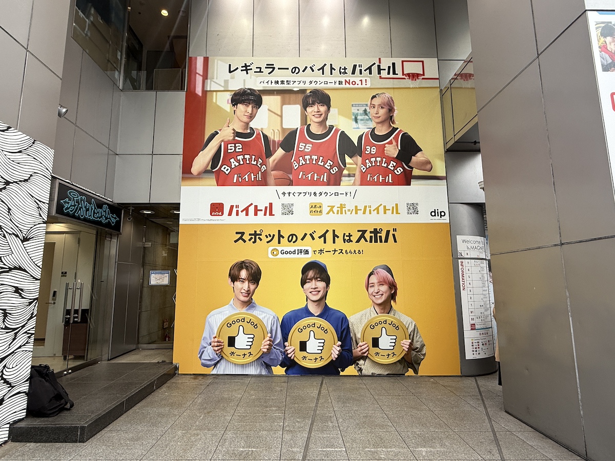 求人情報サービス「バイトル」は、人気グループSnow Manのメンバーを起用し渋谷で屋外広告を実施しています。