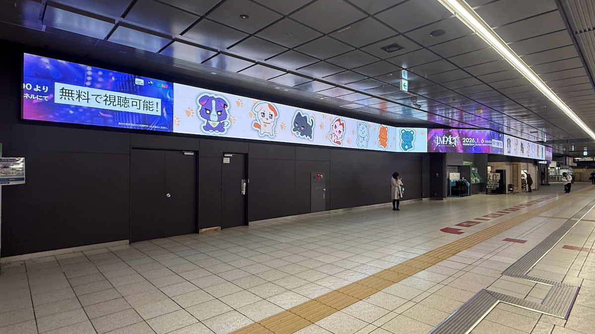 新宿駅南口がサイネージジャックされ、ライブの告知動画が放映されていました。