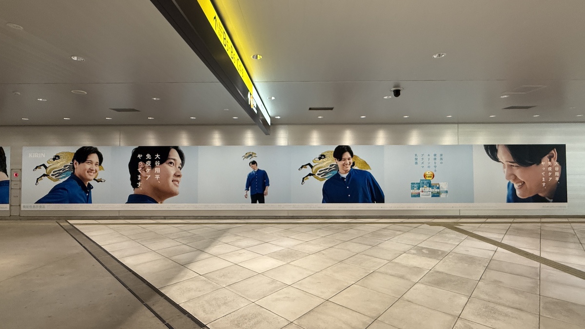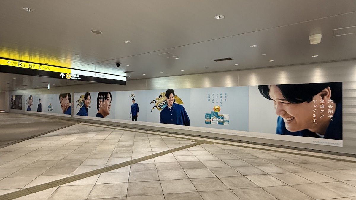 キリン、先週に引き続き「免疫ケア」推進アンバサダーに大谷翔平選手を起用し渋谷駅で交通広告を実施