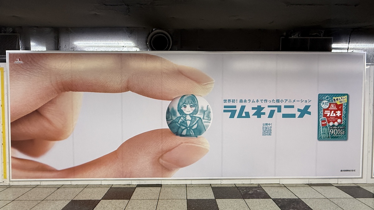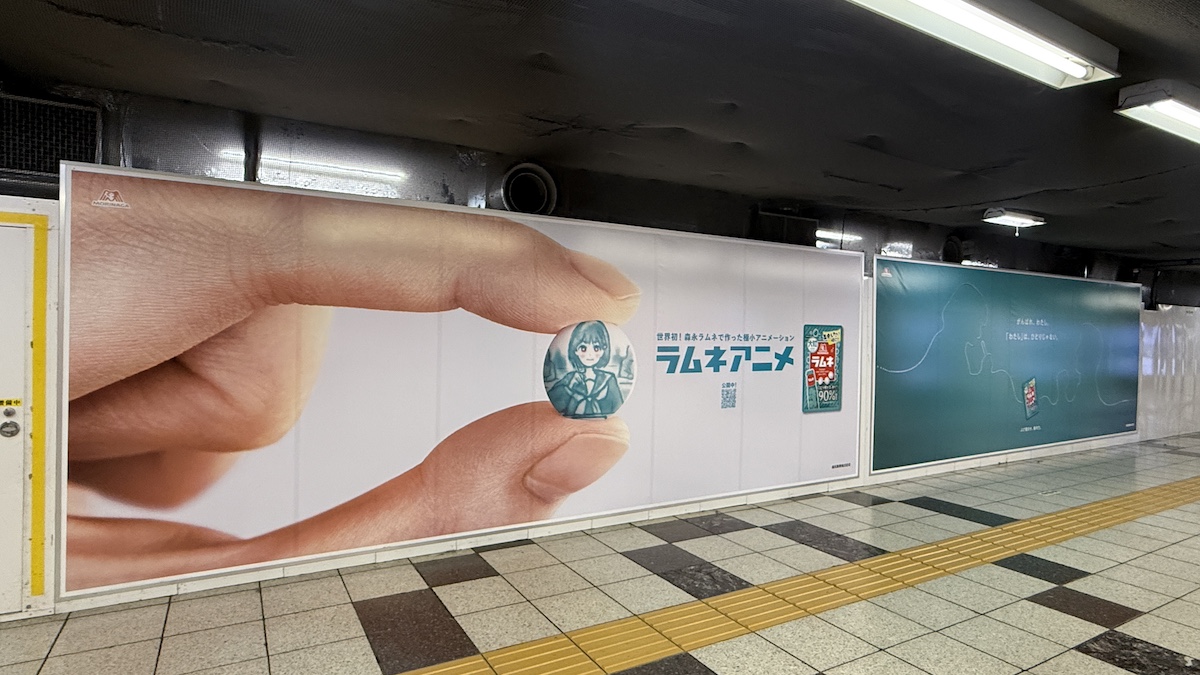 世界初!?森永ラムネ、「ラムネアニメ」で使用した332粒のラムネが交通広告に登場!