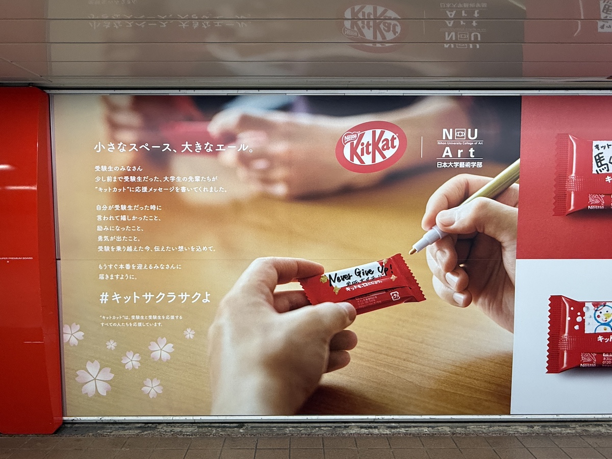 「キットカット×日大芸術学部」、受験生を応援する「#キットサクラサクよ」キャンペーンで交通広告を実施