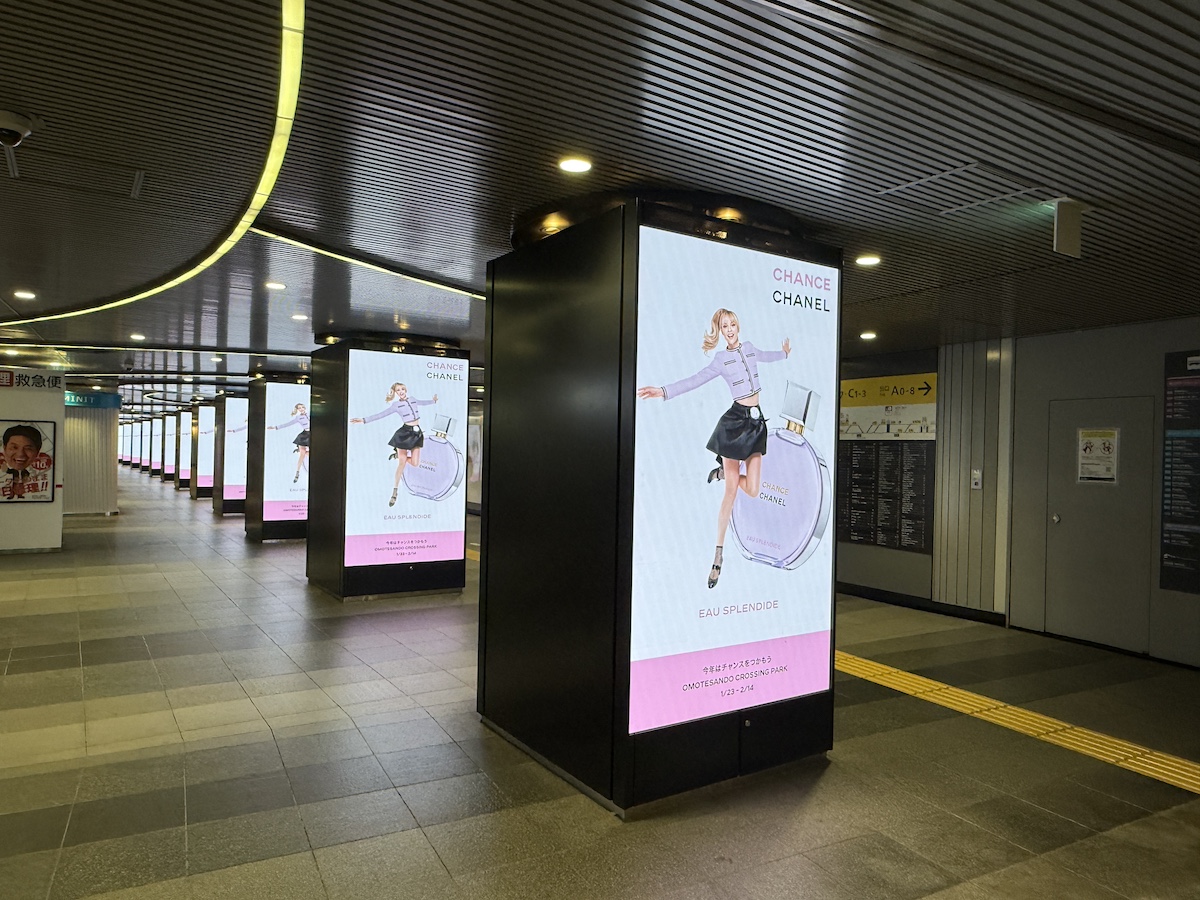 東京メトロ MCV(単駅ジャック・表参道)開催にあわせて、表参道の屋外ビジョンや、駅のコンコース、渋谷駅がイベント告知でエリアジャックされていました。