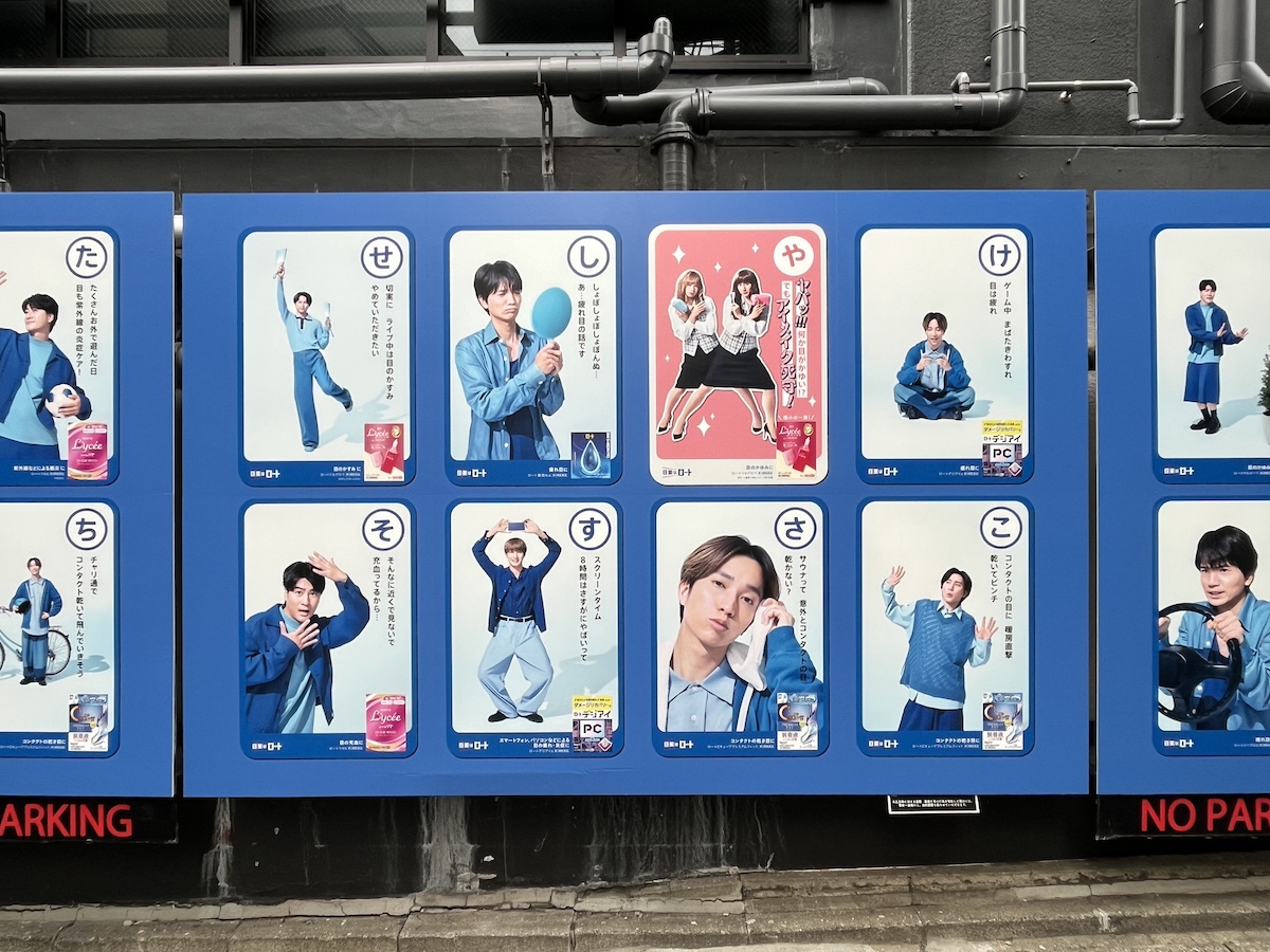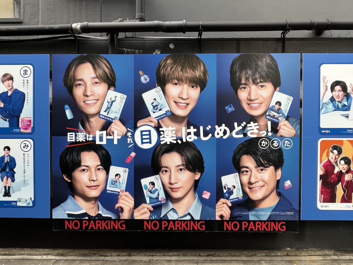 ロート製薬は、SixTONESのデビュー6周年を記念して、URAHARA URAHARA WILD POSTINGでSixTONESの目薬カルタ広告を実施していました。