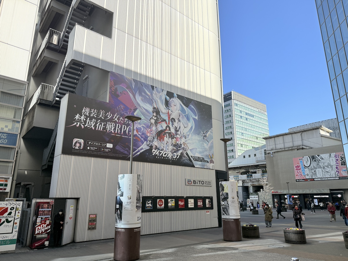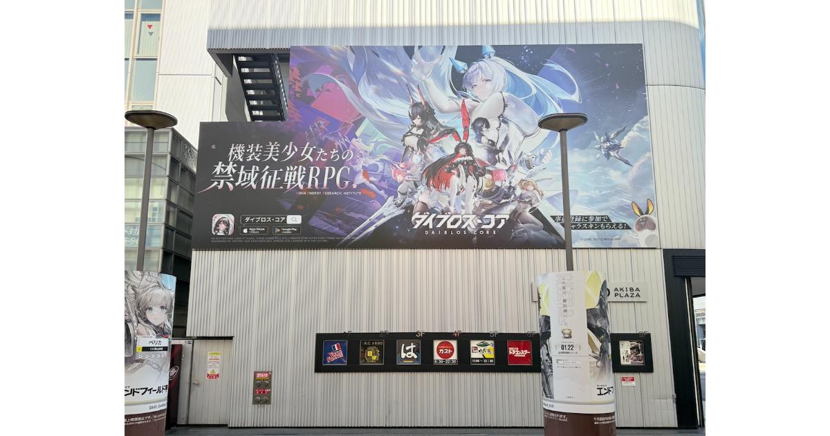 Game Tree Entertainment株式会社は、2026年に2月4日「ダイブロス・コア」の正式リリースに合わせて秋葉原で屋外広告を実施しています。