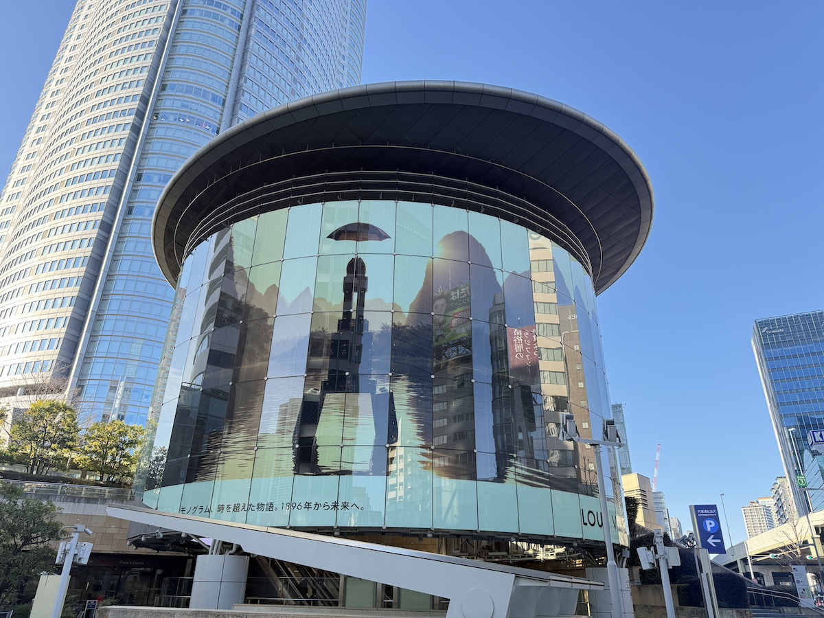 六本木ヒルズには巨大な屋外広告が登場し、「モノグラム、時を超えた物語。1896年から未来へ。」というビジュアルとモノグラムの鞄を積み上げたキービジュアルが展開されていました。