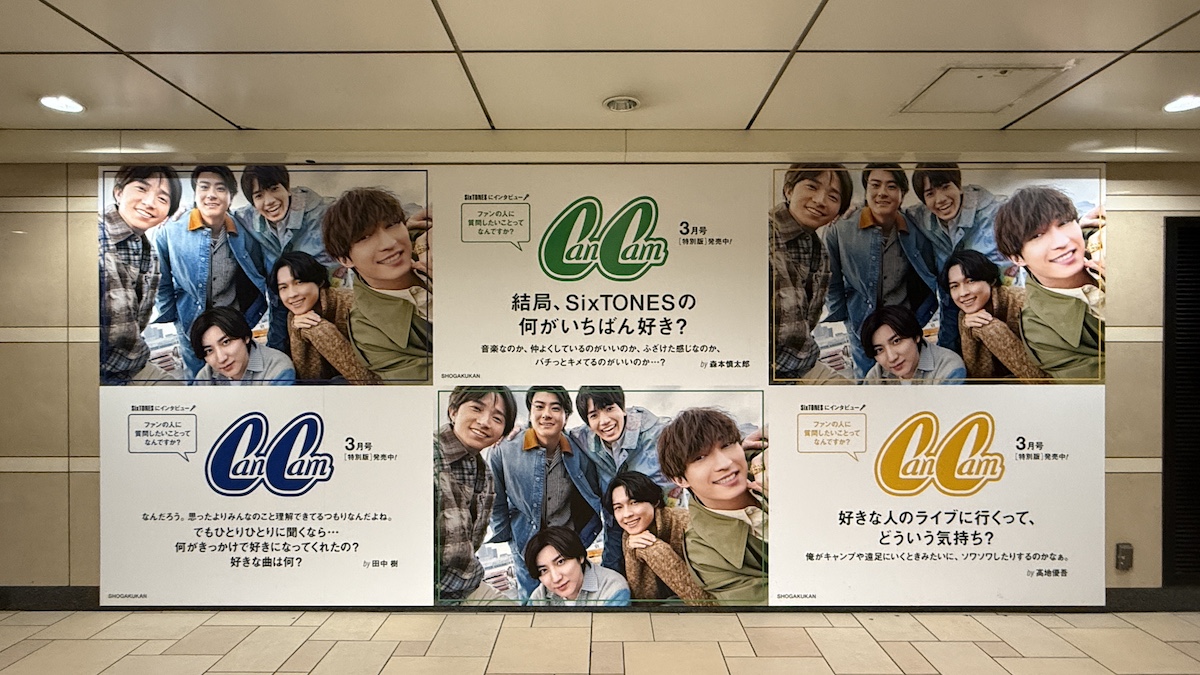 SixTONES、デビュー6周年を記念しCanCam3月号表紙に登場!表参道駅で交通広告を実施