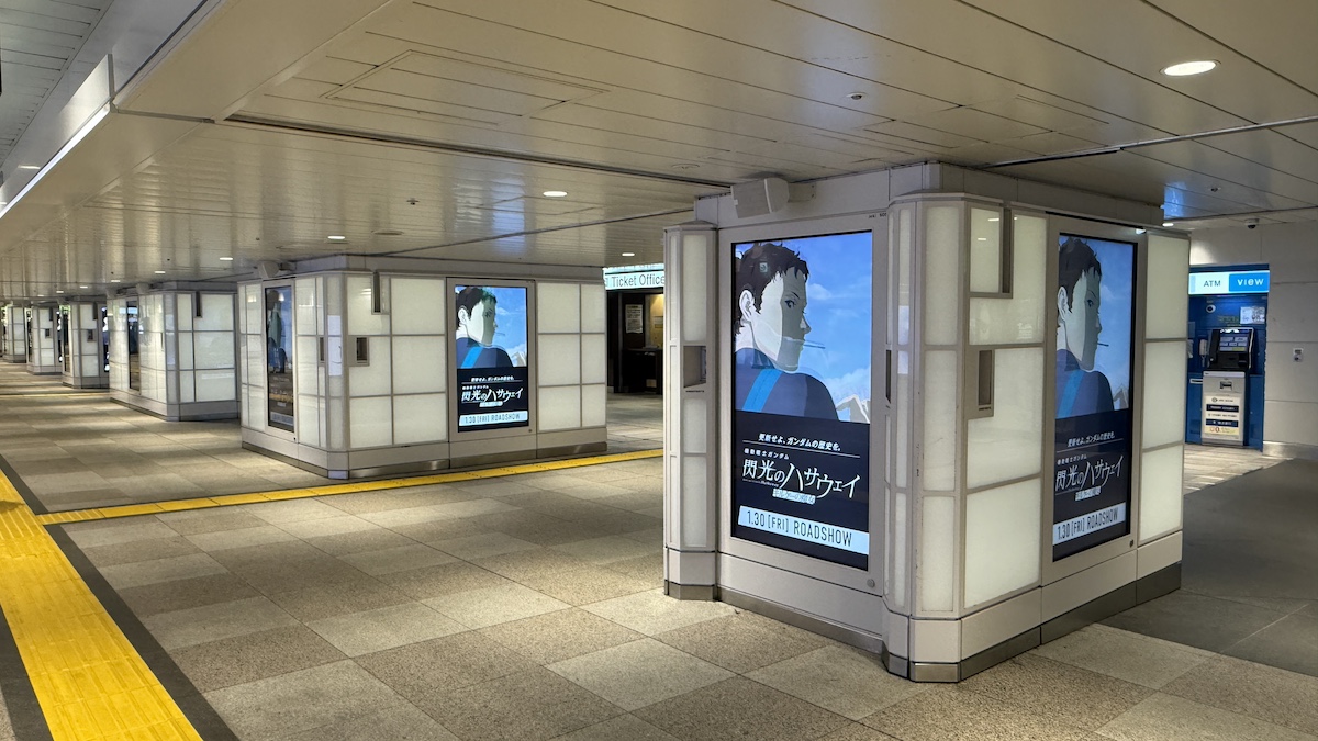 映画の公開を記念し、新宿駅の地下通路にある巨大なサイネージがジャックされ、映画の予告動画が放映されていました。