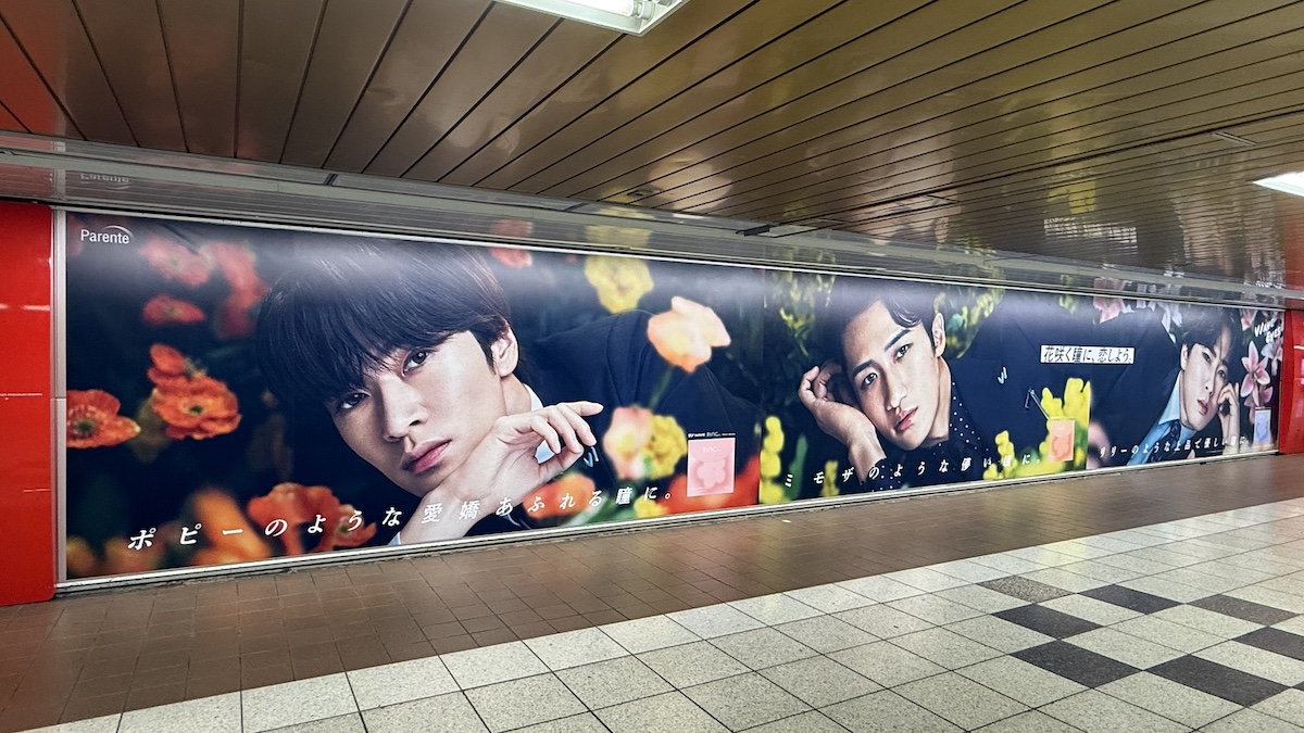 コンタクトレンズ通販サイトを運営する株式会社パレンテがSnow Manの深澤辰哉さん、宮舘涼太さん、岩本照さんを起用し交通広告を実施しています。