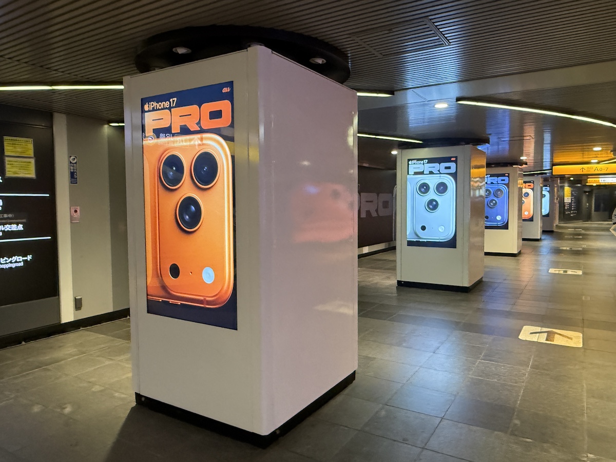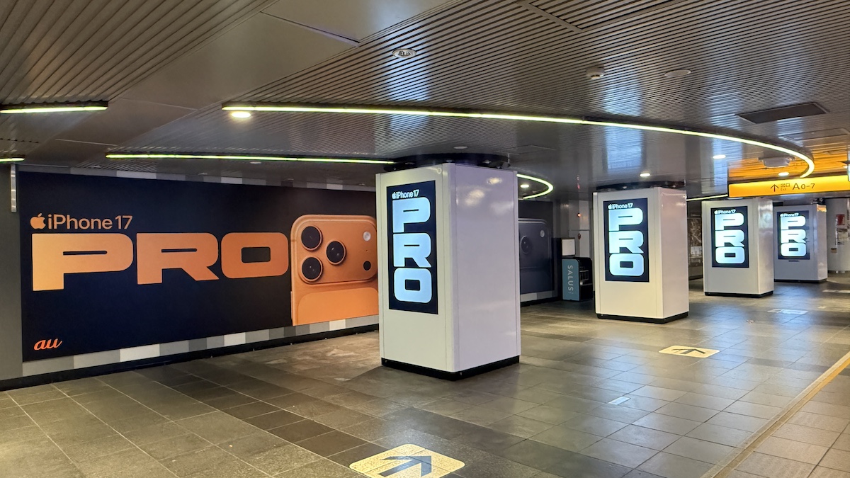 au、「iPhone 17pro」のプロモーションで新宿駅南口をサイネージジャック