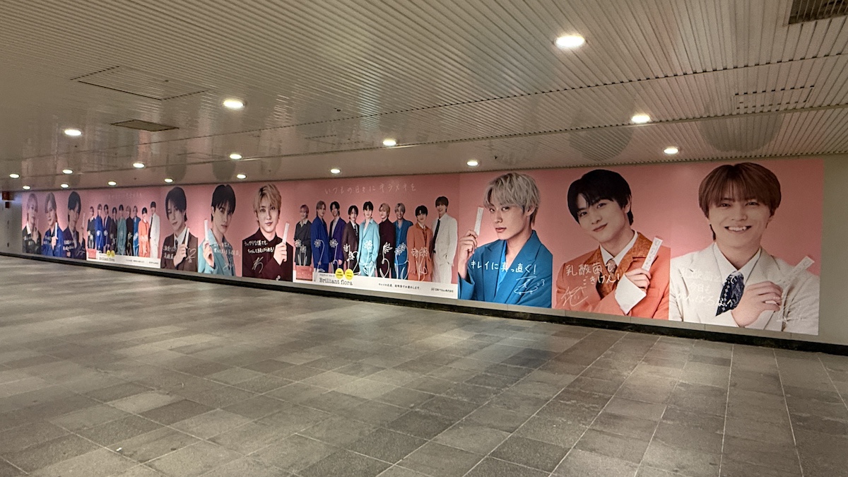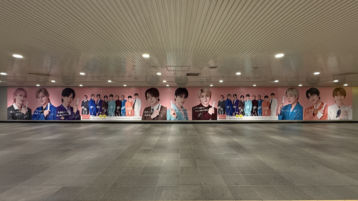 「Brilliant flora×超特急」コラボレーション広告!渋谷駅の地下通路に巨大なシート広告が登場