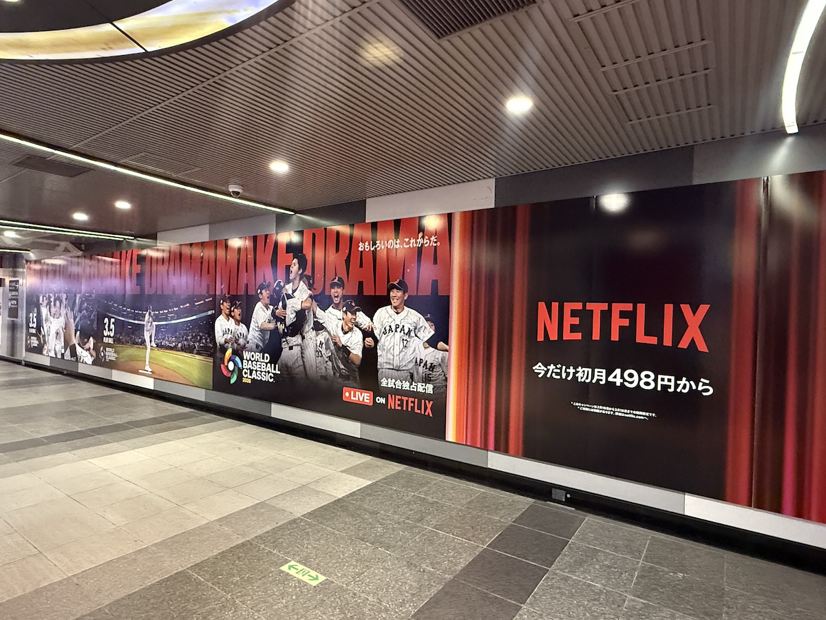 「2026 ワールドベースボールクラシック」の日本国内でのライブ配信がNetflixで行われることにちなんで、渋谷駅の地下通路が『ONE PIECE(ワンピース)』のシーズン2 「2026 ワールドベースボールクラシックのビジュアルでジャックされていました。