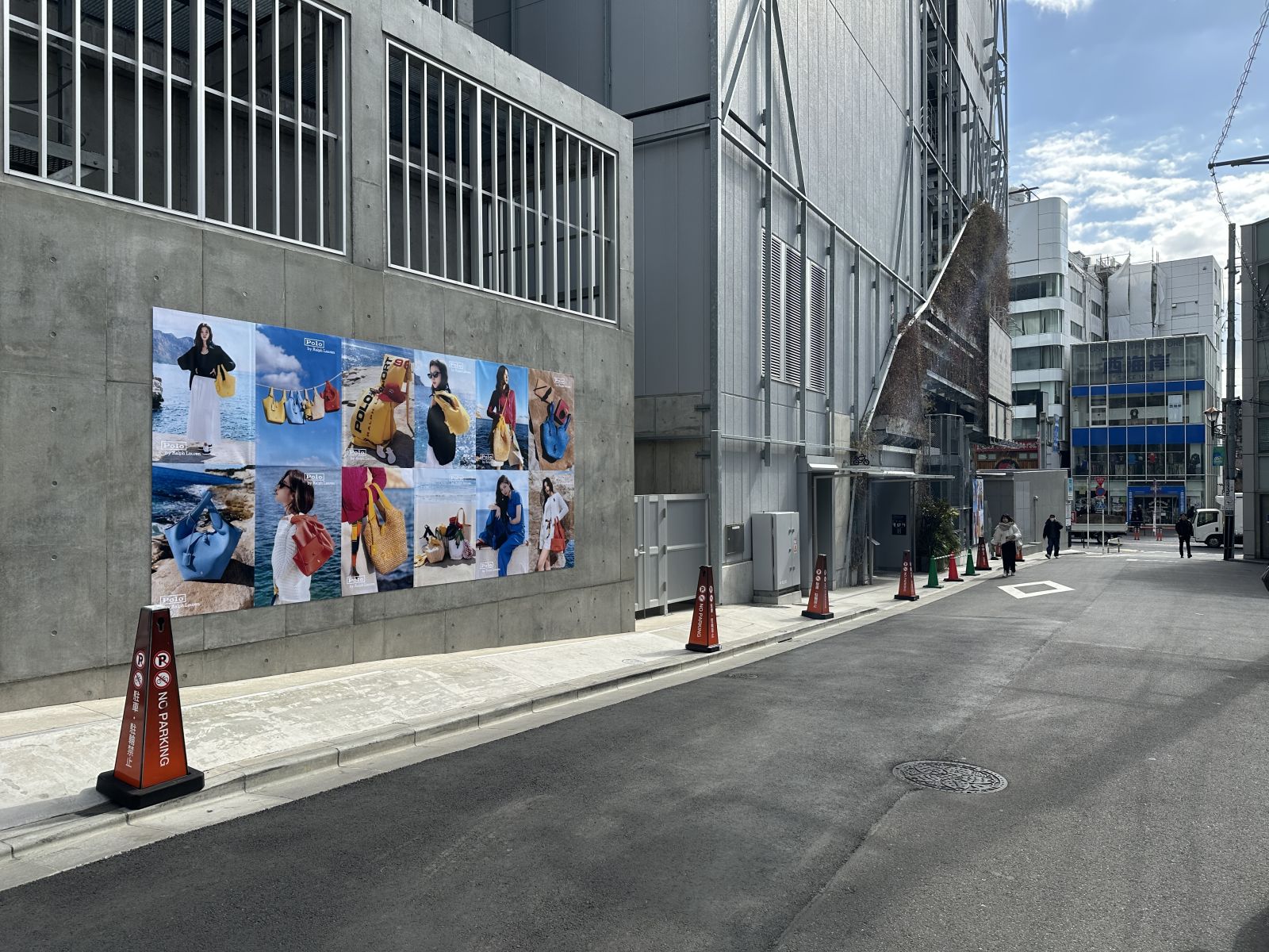 春らしい鮮やかなカラーリングが際立つデザインとなっており、新作コレクションの魅力をストリート空間の中で強く訴求するプロモーションとなっていました。