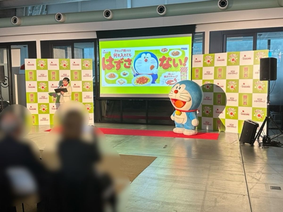 カゴメ株式会社は、トマトケチャップの新たな調理法「焼きケチャップ」の魅力を広めるため、広告キャラクターに国民的キャラクター「ドラえもん」を起用し、新CMの発表会をWeWork Icebergで開催しました。