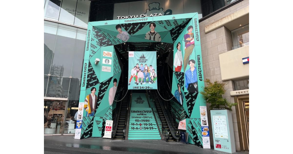 timeleszファミリア、イメージカラーのエメラルドグリーンで東急プラザ表参道「オモカド」をエントランスジャック!